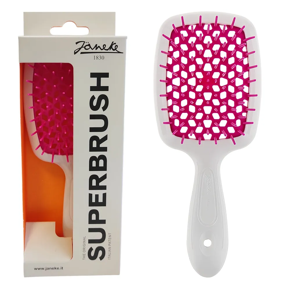 Щітка з м`якими кінчиками для волосся SUPERBRUSH Janeke ніжно та ефективно розплутує волосся, а особлива перфорація у вигляді бджолиного вулика дозволяє дуже швидко його висушити.