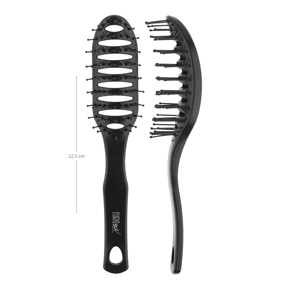 Щоб досягти бездоганного результату під час стайлінгового ритуалу, кожній сучасній дівчині неодмінно знадобляться спеціальні інструменти. Незамінним помічником під час моделювання укладання для чарівної представниці жіночої статі стане ергономічна щітка Curved Vent Brush Colors Eurostil. Вигнуті щітки для кращої адаптації до форми голови, легкі та зручні у використанні завдяки ергономічному дизайну. 11 рядів щетинок анатомічної форми із пластику з кульковою обробкою того ж кольору, що й щітка. Особливості продукту: Щітка-ложка тунельна для укладання пластикова (Чорна) 02195/50 20067 Eurostil Розмір: 22,5 см. Щітка-ложка тунельна для укладання пластикова (Чорна) 02195/50 20067 Eurostil