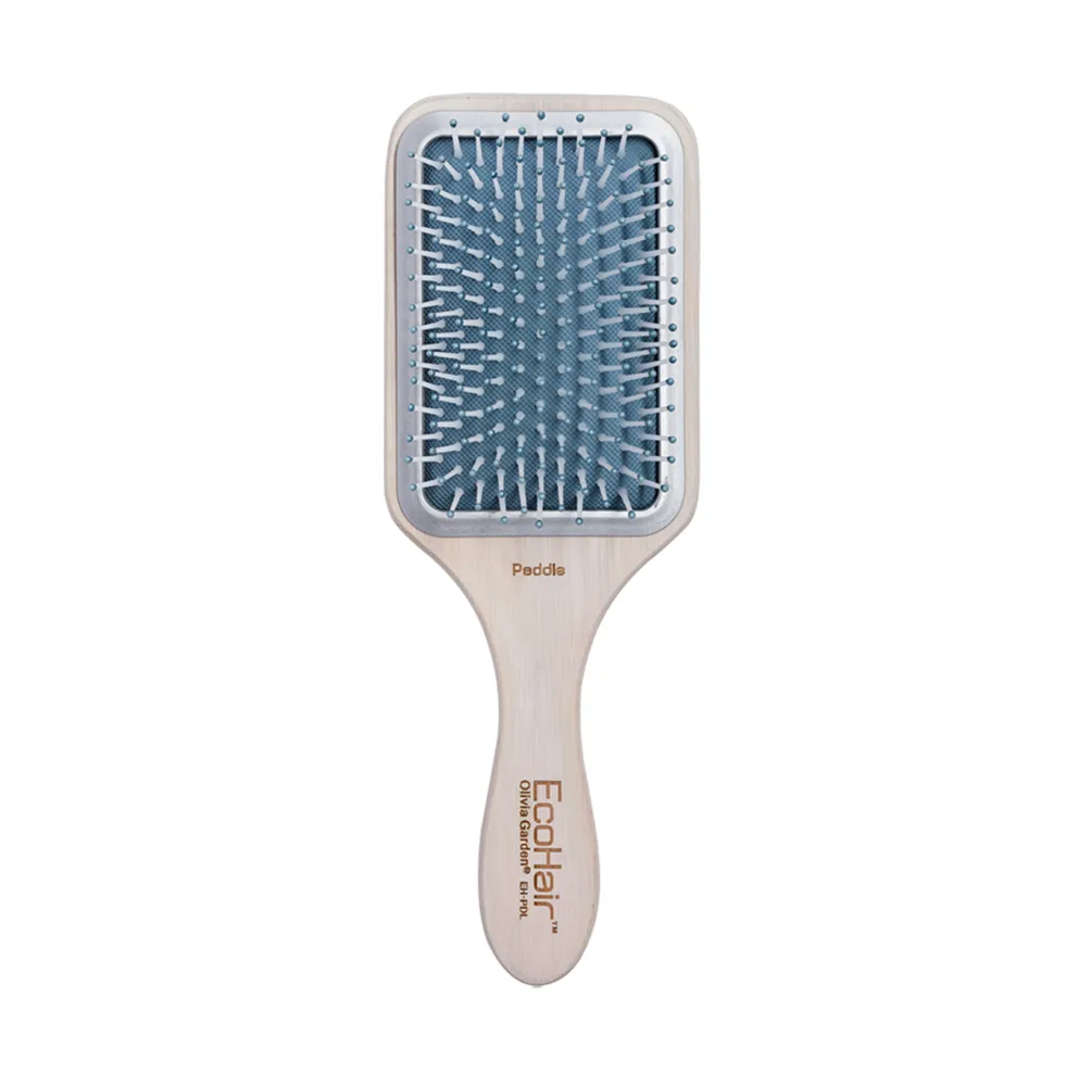 Позбудьтеся заплутаного волосся за допомогою щітки, виготовленої з екологічно чистих матеріалів. Різьблена ручка має ергономічну форму для оптимального комфорту. Вона має надзвичайно зручну поверхню, яка не вислизає та приємно лежить у руці.Щітка для волосся Olivia Garden Ecohair Paddle Styler