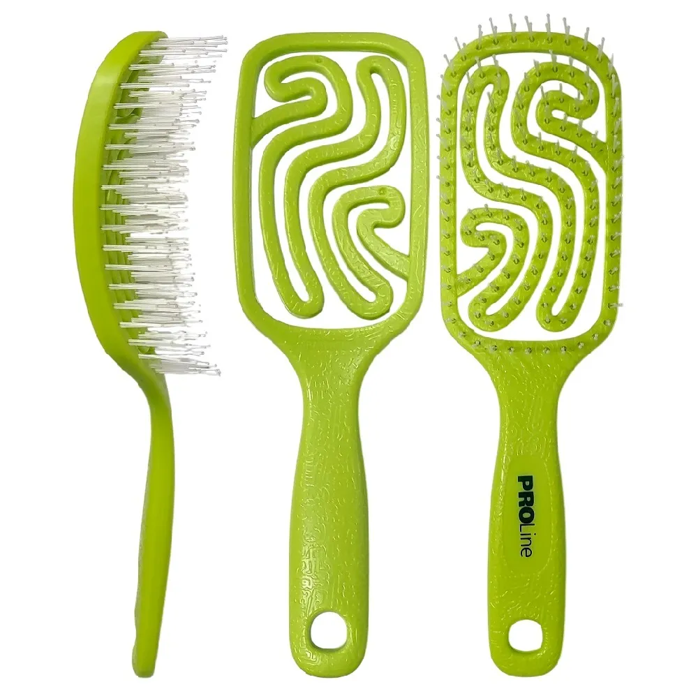 Щітка 5473-G4 PROLine виготовлена з екологічного пластику, що робить її легкою, зручною та безпечною для щоденного використання. Широка продувна конструкція забезпечує швидше висихання волосся під час сушіння феном, дозволяючи рівномірно розподіляти потік повітря. М’які масажні зубчики делікатно розчісують волосся, не травмуючи його та не подразнюючи шкіру голови. Щітка підходить для всіх типів волосся, допомагає швидко та безболісно розплутувати пасма. Доступна в яскравих кольорах: червоний, жовтий, блакитний, салатовий. Особливості продукту: Щітка масажна, продувна, середня (червона, жовта, блакитна, салатова) 5472-G4 PROLine Розмір: 22 х 6,6 х 4,4 см.Щітка масажна, продувна, середня (червона, жовта, блакитна, салатова) 5472-G4 PROLine