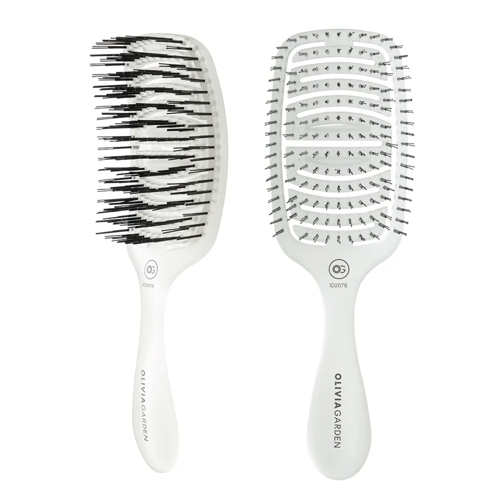 Розчісуйте волосся без больових відчуттів завдяки оптимально підібраним щетинкам для середньої густоти волосся. Пружні та вигнуті, Вид брашингу: щітка для волосся; Вид щетини браша: щетинки Memory Flex; Група OLIVIA GARDEN: CARE; Довжина волосся: Застосування: Колір: білий; Країна-виробник: Бельгія; Лінія Olivia Garden: Essential; Переваги аксесуару: Серія OLIVIA GARDEN: FLEX.Щітка для волосся ESSENTIAL CARE FLEX Fine Hair Memory Flex Bristles Ice White