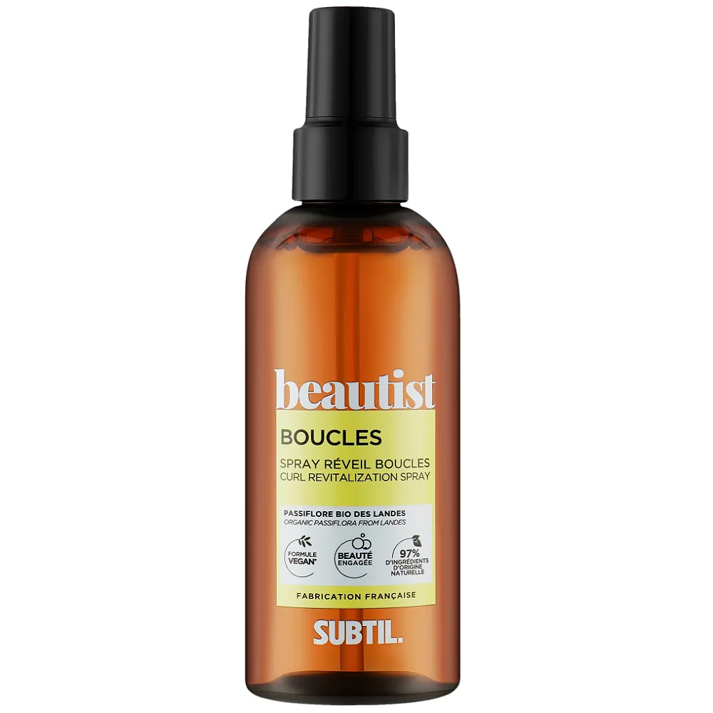 Спрей Curl Revitalization Spray, що не змивається, допомагає оновлювати локони щоранку, його легка та водяниста текстура зволожує та не обтяжує волосся. Його фіксуючий активний інгредієнт, виготовлений із кукурудзи, робить цей догляд справжнім союзником для формування локонів, забезпечує кращу фіксацію та оптимальну чіткість. Він надає кучерям форми, контролює пухнастість, захищає від вологості. До складу входить 12 основних інгредієнтів для забезпечення ефективності та органолептики. Має квітково-лимонний пудровий аромат. Особливості продукту: Активні компоненти: Застосування: рівномірно розпиліть незмивний спрей на вологе або сухе волосся, сформуйте локони на свій смак і завершіть свою звичну процедуру укладання.Спрей для курчавого волосся незмивний Curl Revitalization Spray BOUCLES Beautist Subtil
