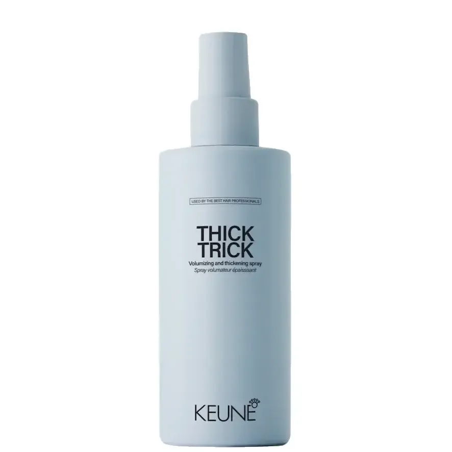 Спрей для надання об`єму THICK TRICK має технологію Bond Fuser, яка робить волосся густішим і об`ємнішим, забезпечуючи при цьому термозахист до 230 °C. До складу входить кукурудзяний крохмаль для еластичної фіксації, рослинні протеїни для зміцнення волосся та пантенол для додаткового харчування. Технологія Bond Fuser захищає існуючі дисульфідні зв`язки та формує нові, щоб зберегти цілісність волосся. Ідеально підходить для тих, хто хоче додаткового об`єму та густоти, залишає волосся з чарівним ароматом Midnight Blossom. Активні компоненти: Фіксація: 2/3. Блиск: 1/3. Застосування: перед використанням ретельно струсіть, щоб активні інгредієнти розподілилися рівномірно. Розпиліть спрей безпосередньо на сухе волосся з відстані 16 см. Для створення потрібного об`єму зосередьтеся на розпиленні біля коріння. Використовуйте фен, щоб укласти волосся за бажанням.Спрей для надання об`єму та потовщення волосся з термозахистом (до 230°C) Volumizing and thickening spray THICK TRICK KEUNE