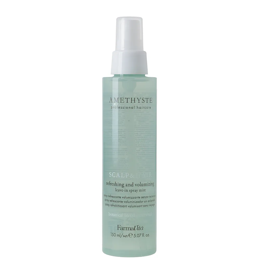 Освіжний спрей для заспокоєння шкіри голови Refreshing And Volumizing SCALP & HAIR AMETHYSTE - ідеальний завершальний етап після хімічних процедур. Заспокоює і відновлює природний баланс шкіри, забезпечує легкий прикореневий об’єм і покращує зовнішній вигляд волосся. Дарує відчуття свіжості й комфорту. Особливості продукту: Спрей заспокійливий для відновлення балансу шкіри голови після хімічних процедур, 150 мл Refreshing And Volumizing SCALP & HAIR AMETHYSTE FarmaVita Застосування: Спрей заспокійливий для відновлення балансу шкіри голови після хімічних процедур, 150 мл Refreshing And Volumizing SCALP & HAIR AMETHYSTE FarmaVita Розпилити безпосередньо на шкіру голови, не змивати.Спрей заспокійливий для відновлення балансу шкіри голови після хімічних процедур Refreshing And Volumizing SCALP & HAIR AMETHYSTE FarmaVita