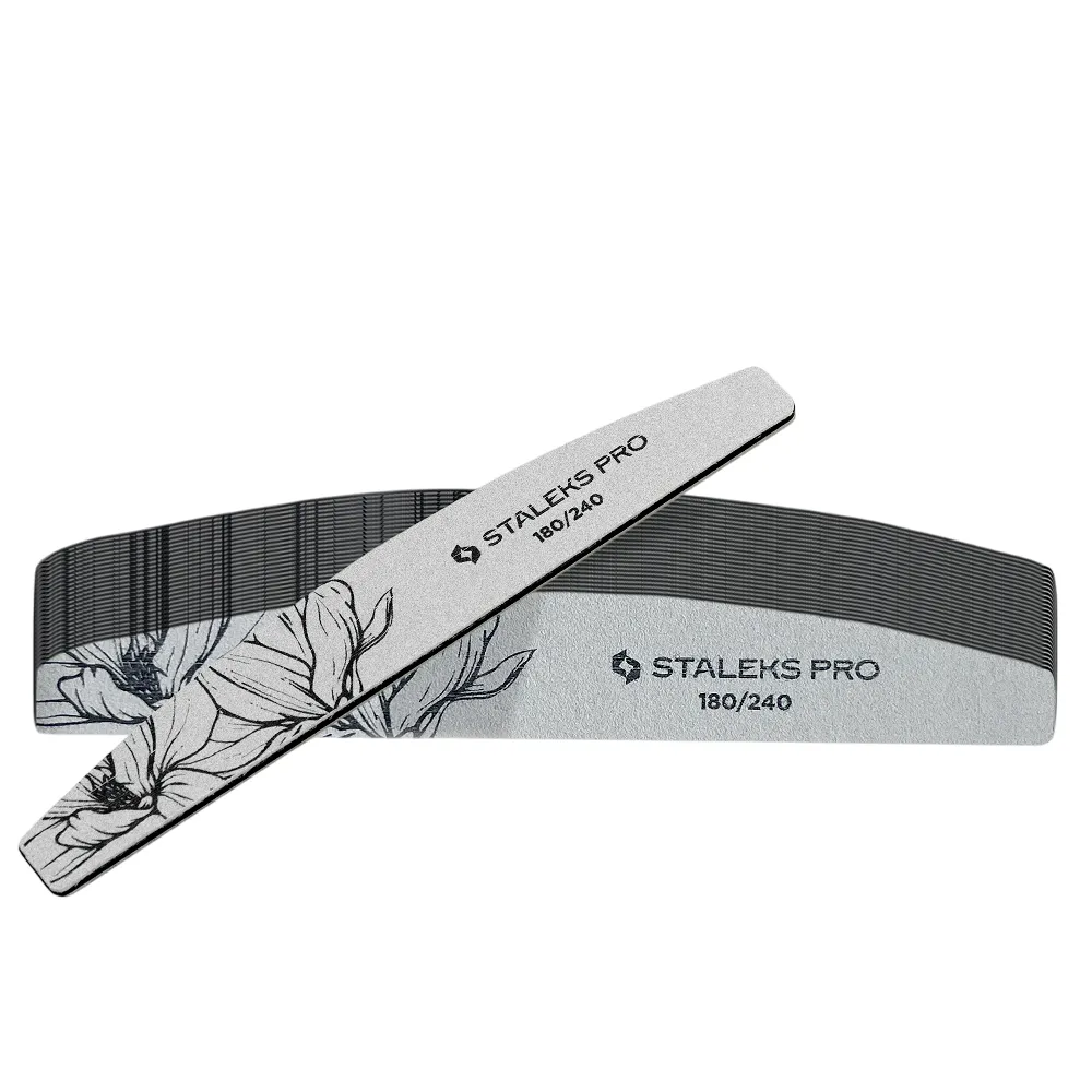 Пилка Pro EXPERT 40 для нігтів (півмісяць) — одноразовий манікюрний та педикюрний інструмент. Створений для дбайливої та ефективної обробки як натуральних, так і штучних нігтиків у спеціалізованих студіях, спа-центрах та в домашніх умовах. Коригує форму без руйнування нігтьової пластини, утворення тріщин та розшаровувань. Застосування одного аксесуара суворо для однієї людини запобігає ризику передачі інфекцій між клієнтами або членами сім`ї. Це також позбавляє потреби стерилізації, гарантуючи безпеку. Особливості продукту: Набір пилок півмісяць мінеральних EXPERT 40 (25 шт) NFE-40-180/240-25 STALEKS PROНабір пилок півмісяць мінеральних EXPERT 40 (25 шт) NFE-40-180/240-25 STALEKS PRO
