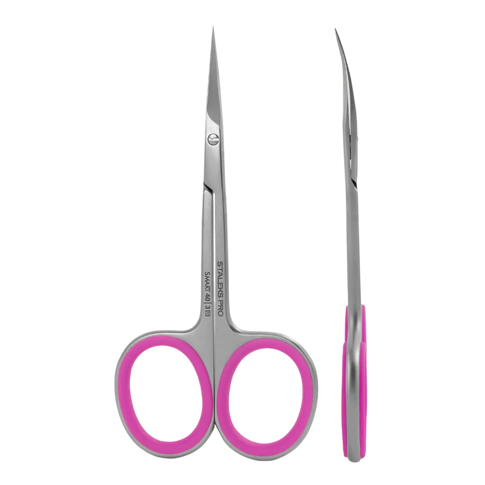 Ножиці SMART 40/3 призначені для обрізання тонкої навколонігтьової та грубої шкіри з валиків при виконанні манікюру в салонних умовах. Заточені вручну, з радіусним профілем, вони зрізають кутикулу точно та акуратно, не залишаючи задирок і нерівностей. Ножиці виготовлені з медичної сталі із матовим покриттям, оброблені пастою ГОІ для стійкості проти корозії. Класичний вигин ріжучих кромок зручний для обрізання кутикули та роботи в зоні синусів. Особливості продукту: Ножиці професійні для кутикули SMART 40 TYPE 3 (SS-40/3) STALEKS PROНожиці професійні для кутикули SMART 40 TYPE 3 (SS-40/3) STALEKS PRO