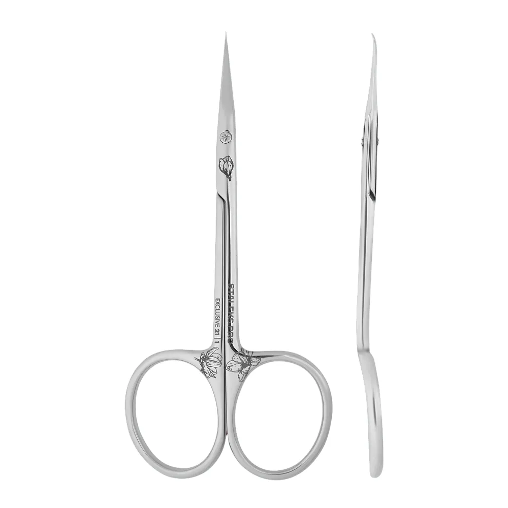 STALEKS EXCLUSIVE 21/1 виготовлені з медичної сталі, з багатоетапним поліруванням пастою ГОІ до дзеркального ефекту, що підвищує стійкість до пошкоджень та корозії. Працюючи інструментом із лезами у вигляді гачка, майстер отримує чудовий огляд робочої зони, йому не потрібно вивертати кисть в зоні синусів, а рука не втомлюється при тривалій роботі. Кінчики відполіровані із зовнішнього боку та не дряпають нігтьову пластину. Ножиці відрізняються унікальними вигнутими ручками та ексклюзивним дизайном із гравіюванням квітки магнолії, яка підкреслює преміальний статус інструменту. Рекомендовані для виконання манікюру майстром у салонних умовах. Особливості продукту: Ножиці професійні з гачком для кутікули EXCLUSIVE 21 TYPE 1 Magnolia (SX-21/1m) STALEKS PROНожиці професійні з гачком для кутикули EXCLUSIVE 21 TYPE 1 Magnolia (SX-21/1m) STALEKS PRO