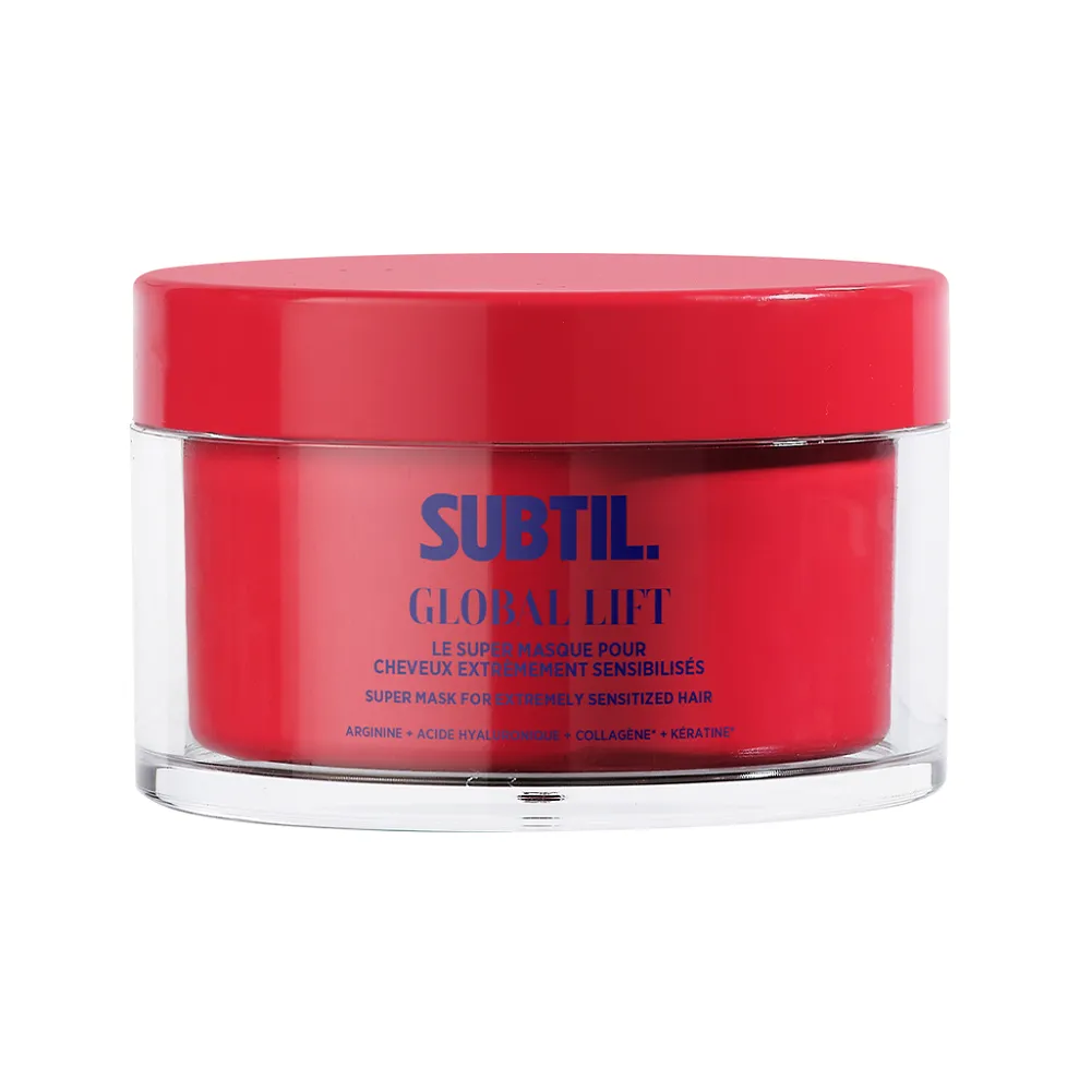 GLOBAL LIFT це один єдиний догляд для глибокого мегавідновлення, який надзвичайно потужно відновлює, надає стійкості волоссю та надзвичайний блиск: Вся лінійка GLOBAL LIFT має приємний аромат вишні! Процедура "Вдома" подовжує ботокс-ефект процедури LOBAL LIFT завдяки потужним відновлювальним активним речовинам. Домашній догляд після процедури "У салоні" включає наступні етапи: Супер-маска Super Masque GLOBAL LIFT, завдяки інгредієнтам із ефектом ботокса, ця маска глибоко зміцнює, відновлює та покращує ваше волосся. Інтенсивно зміцнює пошкоджене та ламке волосся та робить ефект ботокса для сяючого блиску. Причиною неймовірної ефективності GLOBAL LIFT є формули з цінним BTX COMPLEX: Застосування: нанесіть на підсушене рушником волосся, залиште на 5 хвилин під самонагріваючою шапочкою, потім ретельно змийте.Супер-маска для глибокого мегавідновлення волосся (домашній догляд) Super Masque GLOBAL LIFT SUBTIL