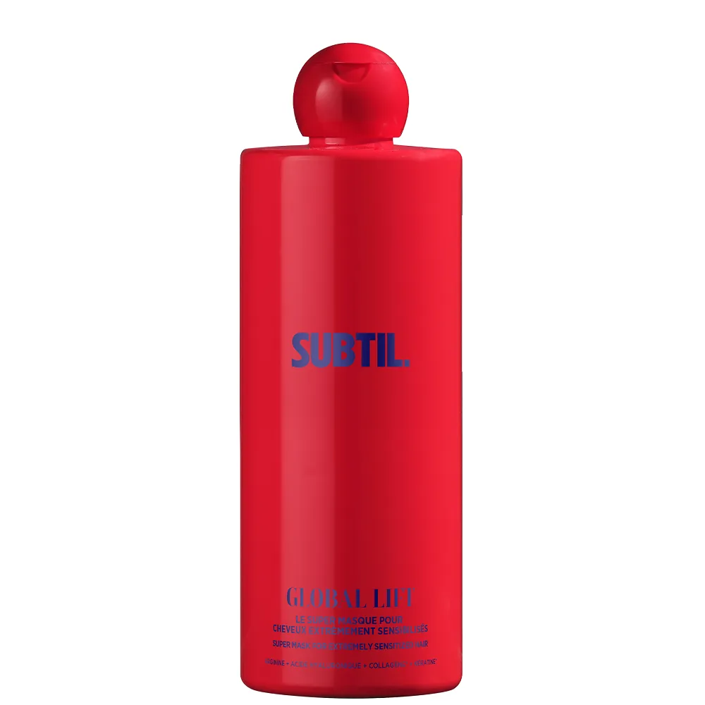 GLOBAL LIFT це один єдиний догляд для глибокого мегавідновлення, який надзвичайно потужно відновлює, надає стійкості волоссю та надзвичайний блиск: Вся лінійка GLOBAL LIFT має приємний аромат вишні! Процедура "У салоні" дозволяє отримати інтенсивний догляд за 30 хвилин, що глибоко відновлює волосся будь-якого типу, надаючи йому еластичності та незрівнянного блиску. Салонна процедура включає наступні етапи: Маска Super Masque GLOBAL LIFT це глибокий догляд, який необхідний для відновлення та покращення волосся. Збагачений активними інгредієнтами з ефектом ботокса, він інтенсивно зміцнює волокна волосся та відновлює пошкоджене та ослаблене волосся, надаючи йому дзеркального блиску та шовковистої текстури. Причиною неймовірної ефективності GLOBAL LIFT є формули з цінним BTX COMPLEX: Застосування: УНІКАЛЬНЕ ДОЗУВАННЯ: незалежно від ступеню пошкодження волосся 40г Супер-маски з 5г Концентрату GLOBAL LIFT!Супер-маска для глибокого мегавідновлення волосся (салонна процедура) Super Masque GLOBAL LIFT SUBTIL