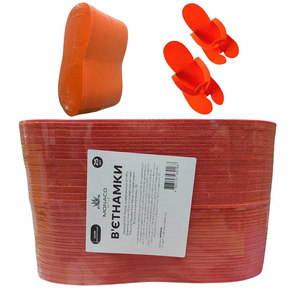 Відгуки Тапочки-в`єтнамки одноразові з матеріалу EVA (1 пара), колір: ПОМАРАНЧЕВИЙ (в упаковці 25 пар) Monaco Style