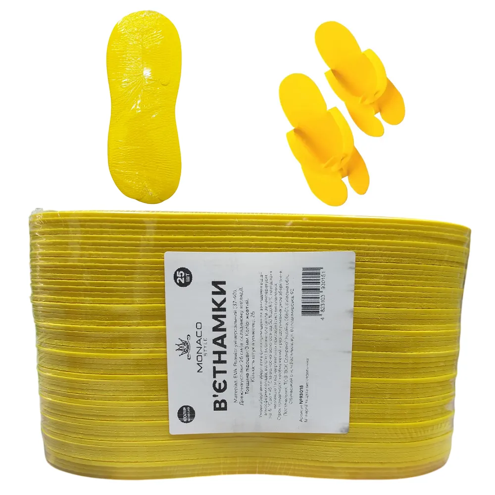 Тапочки-в`єтнамки одноразові з матеріалу EVA (1 пара), колір: ЖОВТИЙ (в упаковці 25 пар) Monaco Style