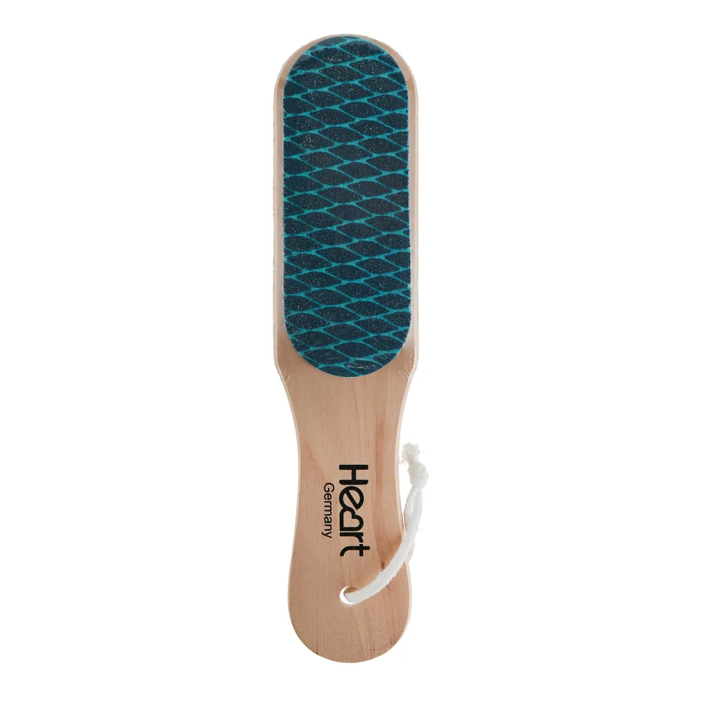 Пилка-терка Heart із рукояттю з дерева - професійний інструмент для педикюру, який допомагає ефективно обробляти огрубілу шкіру та натоптиші. Інструмент обладнаний двома абразивними поверхнями з зернистістю 80/100 грит. Це дозволяє спочатку знімати грубий шар, а потім делікатно згладжувати поверхню. Рукоять із натурального дерева забезпечує міцність і зручність у роботі, не обтяжує кисть майстра. Форма пилки дозволяє рівномірно обробляти стопу та досягати ділянок біля країв п’яти. Рекомендується проблемні зони стоп один раз на тиждень очищати теркою. Особливості продукту: Терка педикюрна дерев`яна (світле дерево) 80/100 грит Heart Розмір: 22,5 x 13,6 x 5 см.Терка педикюрна дерев`яна 80/100 грит Heart