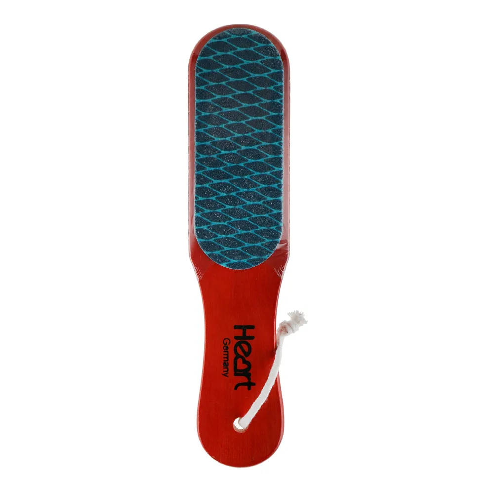 Пилка-терка Heart із рукояттю з дерева - професійний інструмент для педикюру, який допомагає ефективно обробляти огрубілу шкіру та натоптиші. Інструмент обладнаний двома абразивними поверхнями з зернистістю 80/100 грит. Це дозволяє спочатку знімати грубий шар, а потім делікатно згладжувати поверхню. Рукоять із натурального дерева забезпечує міцність і зручність у роботі, не обтяжує кисть майстра. Форма пилки дозволяє рівномірно обробляти стопу та досягати ділянок біля країв п’яти. Рекомендується проблемні зони стоп один раз на тиждень очищати теркою. Особливості продукту: Терка педикюрна дерев`яна (темне дерево) 80/100 грит Heart Розмір: 22,5 x 13,6 x 5 см.Терка педикюрна дерев`яна 80/100 грит Heart