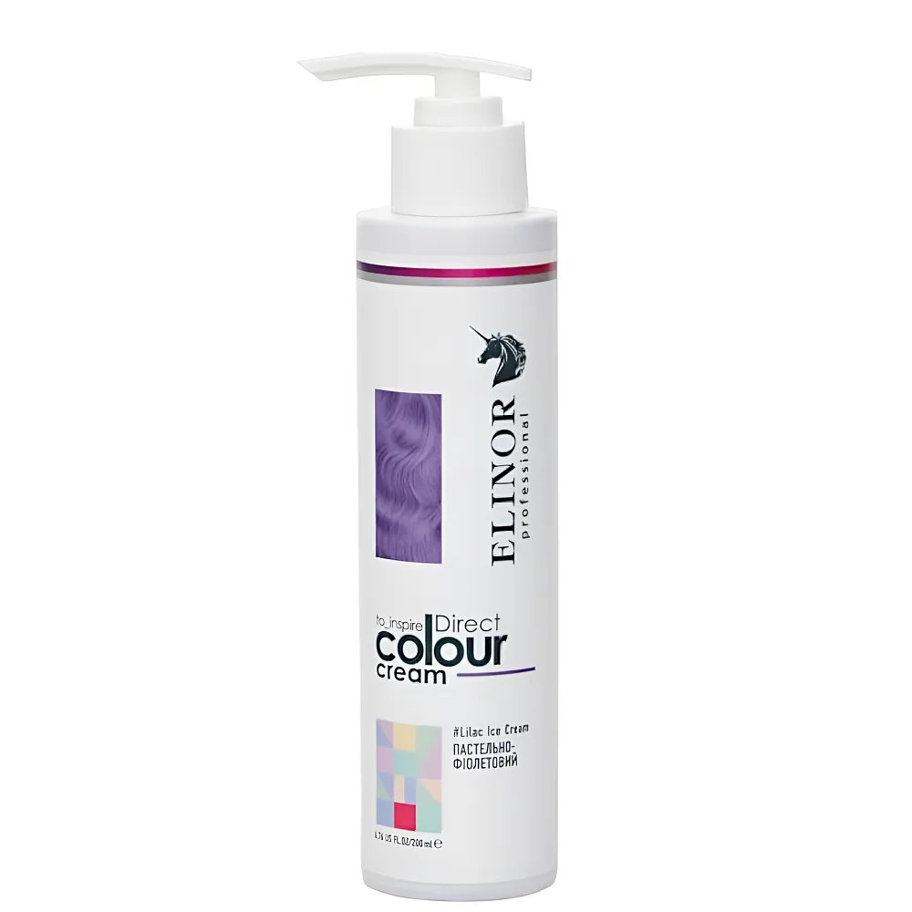 Direct Colour Cream — професійний тонувальний крем прямої дії, розроблений для створення яскравих відтінків на знебарвленому або освітленому волоссі. На натуральному темному волоссі може дати легкий відблиск при денному світлі, особливо на сонці, але не дає інтенсивного тону без попереднього освітлення. Допомагає тимчасово змінити образ без стійкого фарбування та підходить для створення акцентних кольорових ефектів або повного тонування. Формула крему не містить аміаку та забезпечує не лише яскравий кольоровий ефект, але й додатковий догляд. Засіб збагачений активними компонентами, які зволожують, пом’якшують і захищають волосся під час тонування. Стійкість кольору до 6–15 миттів голови, залежно від типу волосся та засобів догляду. Частково тонуватиме сивину, але не повністю перекриє. Особливості продукту: Тонувальний крем для волосся прямої дії (колір: ПАСТЕЛЬНИЙ-ФІОЛЕТОВИЙ/Lilac Ice Cream), 200 мл Direct Colour Cream ELINOR Professional Застосування: Тонувальний крем для волосся прямої дії (колір: ПАСТЕЛЬНИЙ-ФІОЛЕТОВИЙ/Lilac Ice Cream), 200 мл Direct Colour Cream ELINOR Professional Зручний у використанні, не потребує окислювача, ідеально наносити на висвітленні пасма. Можна експериментувати і додавати в улюблену маску для підтримання кольору.Тонувальний крем для волосся прямої дії Direct Colour Cream ELINOR Professional