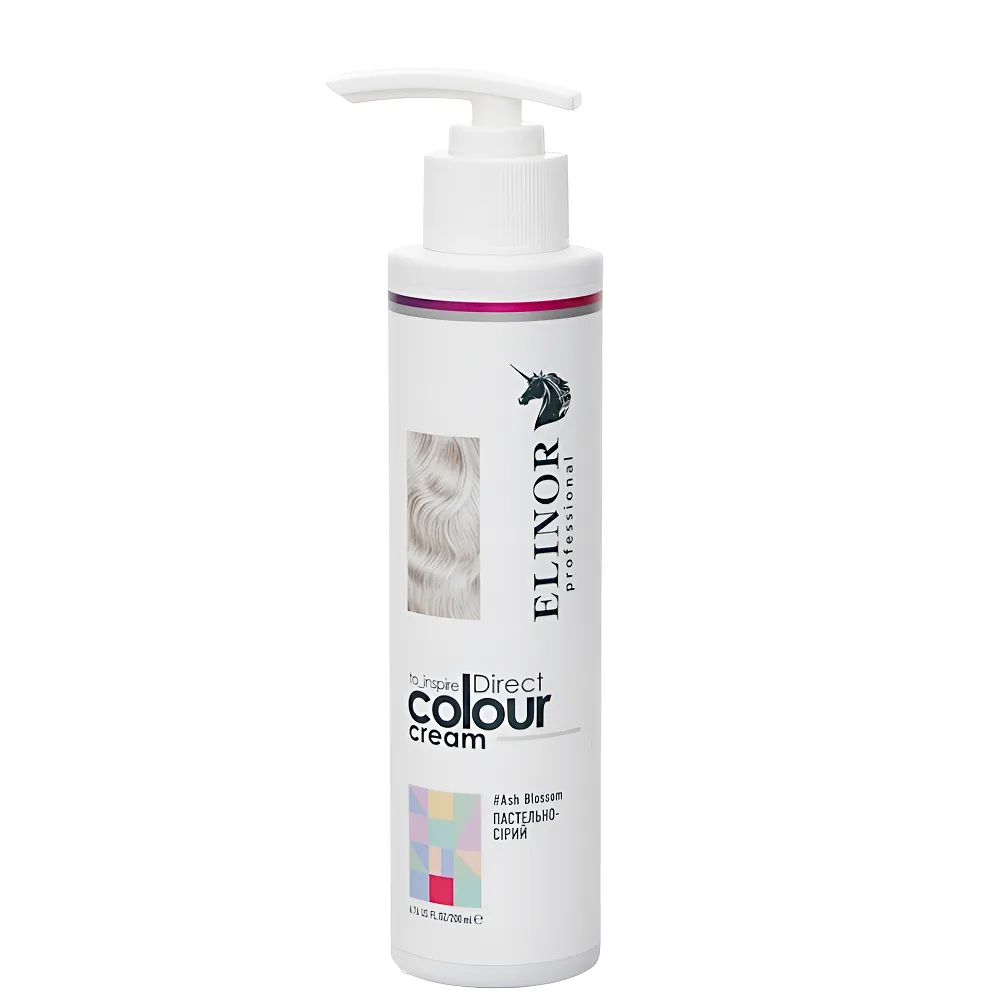 Direct Colour Cream — професійний тонувальний крем прямої дії, розроблений для створення яскравих відтінків на знебарвленому або освітленому волоссі. На натуральному темному волоссі може дати легкий відблиск при денному світлі, особливо на сонці, але не дає інтенсивного тону без попереднього освітлення. Допомагає тимчасово змінити образ без стійкого фарбування та підходить для створення акцентних кольорових ефектів або повного тонування. Формула крему не містить аміаку та забезпечує не лише яскравий кольоровий ефект, але й додатковий догляд. Засіб збагачений активними компонентами, які зволожують, пом’якшують і захищають волосся під час тонування. Стійкість кольору до 6–15 миттів голови, залежно від типу волосся та засобів догляду. Частково тонуватиме сивину, але не повністю перекриє. Особливості продукту: Тонувальний крем для волосся прямої дії (колір: ПАСТЕЛЬНИЙ-СІРИЙ/Ash Blossom), 200 мл Direct Colour Cream ELINOR Professional Застосування: Тонувальний крем для волосся прямої дії (колір: ПАСТЕЛЬНИЙ-СІРИЙ/Ash Blossom), 200 мл Direct Colour Cream ELINOR Professional Зручний у використанні, не потребує окислювача, ідеально наносити на висвітленні пасма. Можна експериментувати і додавати в улюблену маску для підтримання кольору.Тонувальний крем для волосся прямої дії Direct Colour Cream ELINOR Professional