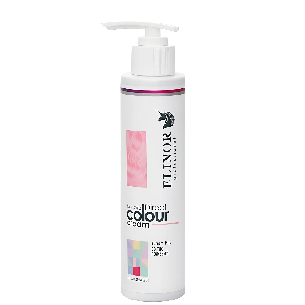 Direct Colour Cream — професійний тонувальний крем прямої дії, розроблений для створення яскравих відтінків на знебарвленому або освітленому волоссі. На натуральному темному волоссі може дати легкий відблиск при денному світлі, особливо на сонці, але не дає інтенсивного тону без попереднього освітлення. Допомагає тимчасово змінити образ без стійкого фарбування та підходить для створення акцентних кольорових ефектів або повного тонування. Формула крему не містить аміаку та забезпечує не лише яскравий кольоровий ефект, але й додатковий догляд. Засіб збагачений активними компонентами, які зволожують, пом’якшують і захищають волосся під час тонування. Стійкість кольору до 6–15 миттів голови, залежно від типу волосся та засобів догляду. Частково тонуватиме сивину, але не повністю перекриє. Особливості продукту: Тонувальний крем для волосся прямої дії (колір: СВІТЛО-РОЖЕВИЙ/Cream Pink), 200 мл Direct Colour Cream ELINOR Professional Застосування: Тонувальний крем для волосся прямої дії (колір: СВІТЛО-РОЖЕВИЙ/Cream Pink), 200 мл Direct Colour Cream ELINOR Professional Зручний у використанні, не потребує окислювача, ідеально наносити на висвітленні пасма. Можна експериментувати і додавати в улюблену маску для підтримання кольору.Тонувальний крем для волосся прямої дії Direct Colour Cream ELINOR Professional