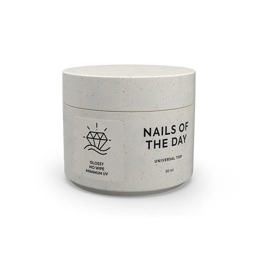 NAILSOFTHEDAY Universal Top — глянцевий топ без липкого шару з мінімальним вмістом уф-фільтрів. Той самий топ, що не синить! Особлива формула NAILSOFTHEDAY — твій ідеальний вибір, особливо для сонячних днів. Завдяки сучасній формулі ідеально підходить як для GLOSSY / NO WIPE / MINIMUM UV, консистенція рідка Полімеризація: UV — 180 секунд, LED — 30-60 секунд. Технологія застосування: Топ глянцевий без липкого шару з мінімальним вмістом UV-фільтрів, 10 мл Universal Top NAILSOFTHEDAY *обов?язково забезпечити достатнє охолодження поверхні топа після полімеризації, приблизно 20-30 секунд. Попередження: уникайте контакту зі шкірою. Використовуйте лише відповідно до інструкцій. Зберігати подалі від сонячних променів та вТоп глянцевий без липкого шару з мінімальним вмістом UV-фільтрів, 10 мл Universal Top NAILSOFTHEDAY