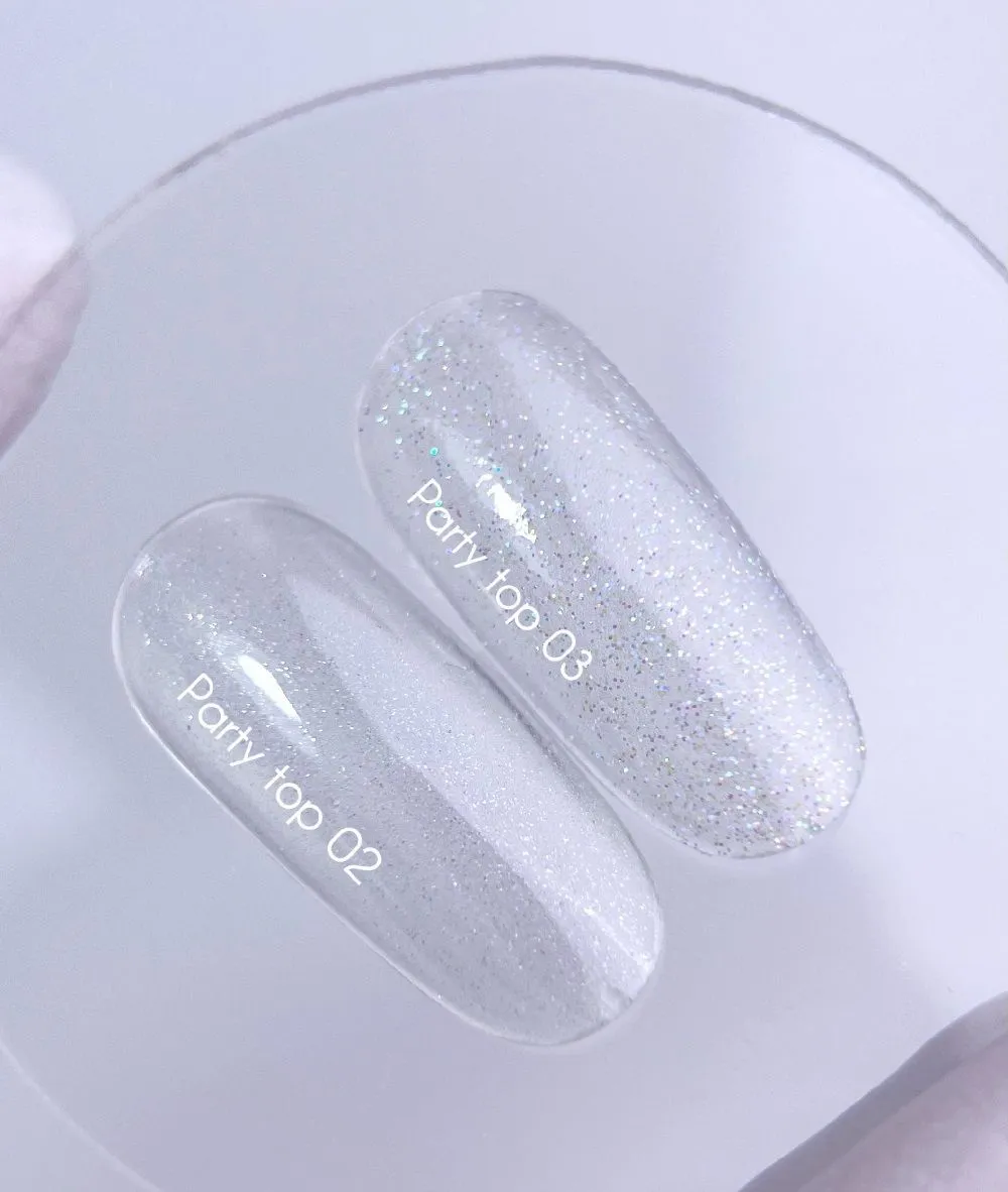 NAILSOFTHEDAY Party Top — глянсовий топ з мерехтливими срібними блискітками, що неймовірно переливаються, без липкого шару. Завдяки Технологія застосування: рівномірно розподілити топ та ретельно вирівняти. Полімеризація: UV — 120 секунд, LED — 60 секунд. Попередження: уникайте контакту зі шкірою. Використовуйте лише відповідно до інструкцій. Зберігати подалі від сонячних променів та вТоп прозорий з дрібним шиммером без липкого шару для нігтів, 10 мл №02 Party Top NAILSOFTHEDAY