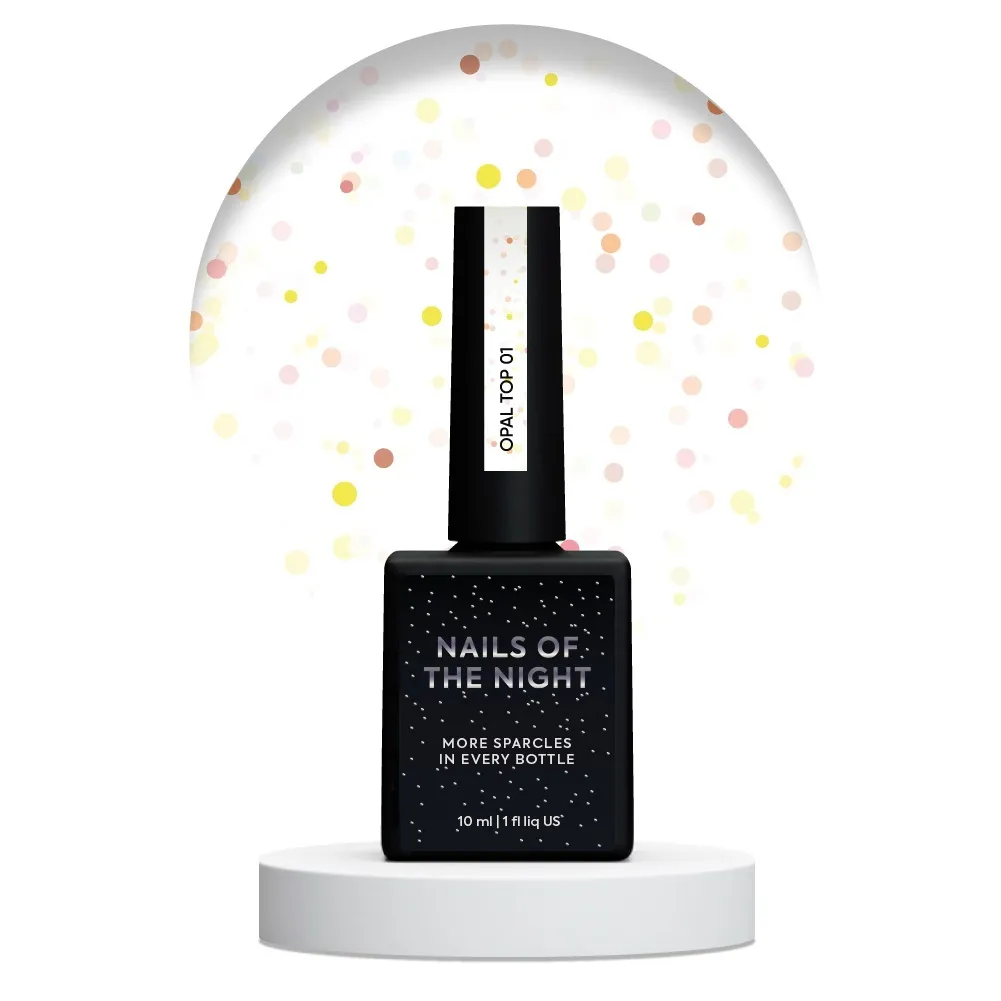 NAILSOFTHENIGHT Opal top — фінішне покриття з опаловими блискітками, без липкого шару та без уф-фільтрів, неймовірно блискучий. Підходить Технологія застосування: Топ з опаловими блискітками Opal Top NAILSOFTHENIGHT Попередження: уникайте контакту зі шкірою. Використовуйте лише відповідно до інструкцій. Зберігати подалі від сонячних променів та вТоп прозорий з опаловими блискітками, без липкого шару, 10 мл №01 Opal Top NAILSOFTHENIGHT