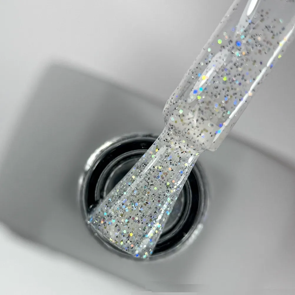 голографічні блискітки. Він призначений для надання гель-лаковому покриттю яскравого, переливчастого фінішу.