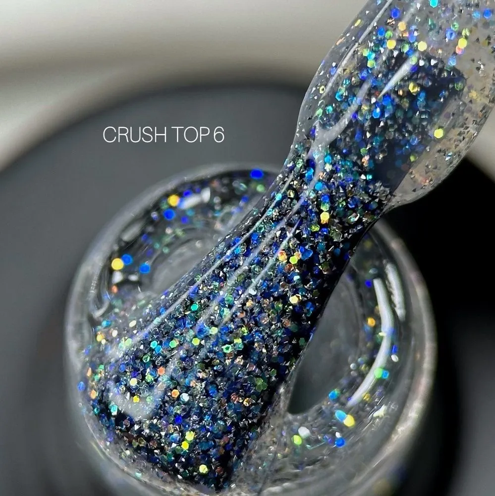 SAGA Professional Crush Top №06 — це декоративний топ без липкого шару, який містить різнокольорові (золоті, сині та інші) мерехтливі, Особливості продукту: Топ з кольоровими блискітками, 9 мл №06 Cruch Top SAGA ProfessionalТоп з кольоровими блискітками, 9 мл №06 Cruch Top SAGA Professional