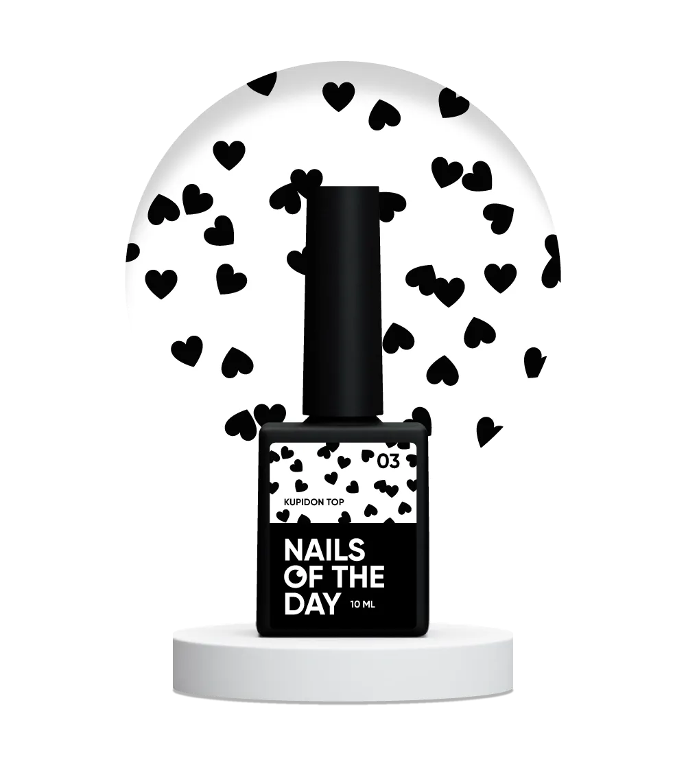 NAILSOFTHEDAY Kupidon top — сучасне та ніжне фінішне покриття для нігтів з сердечками, без липкого шару. Технологія застосування: Топ з сердечками без липкого шару Kupidon Top NAILSOFTHEDAYТоп з сердечками без липкого шару Kupidon Top NAILSOFTHEDAY