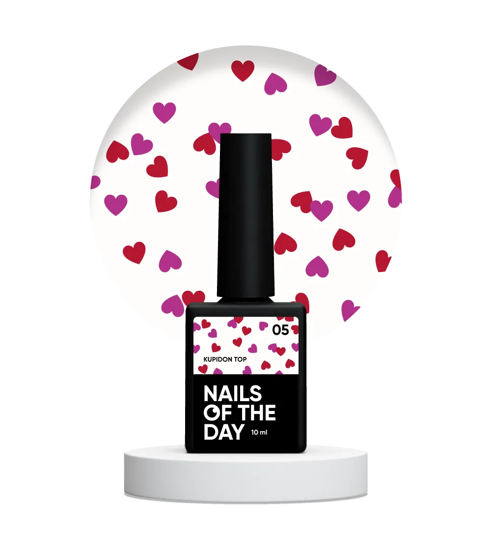 Топ з сердечками без липкого шару, 10 мл №05 Kupidon Top NAILSOFTHEDAY