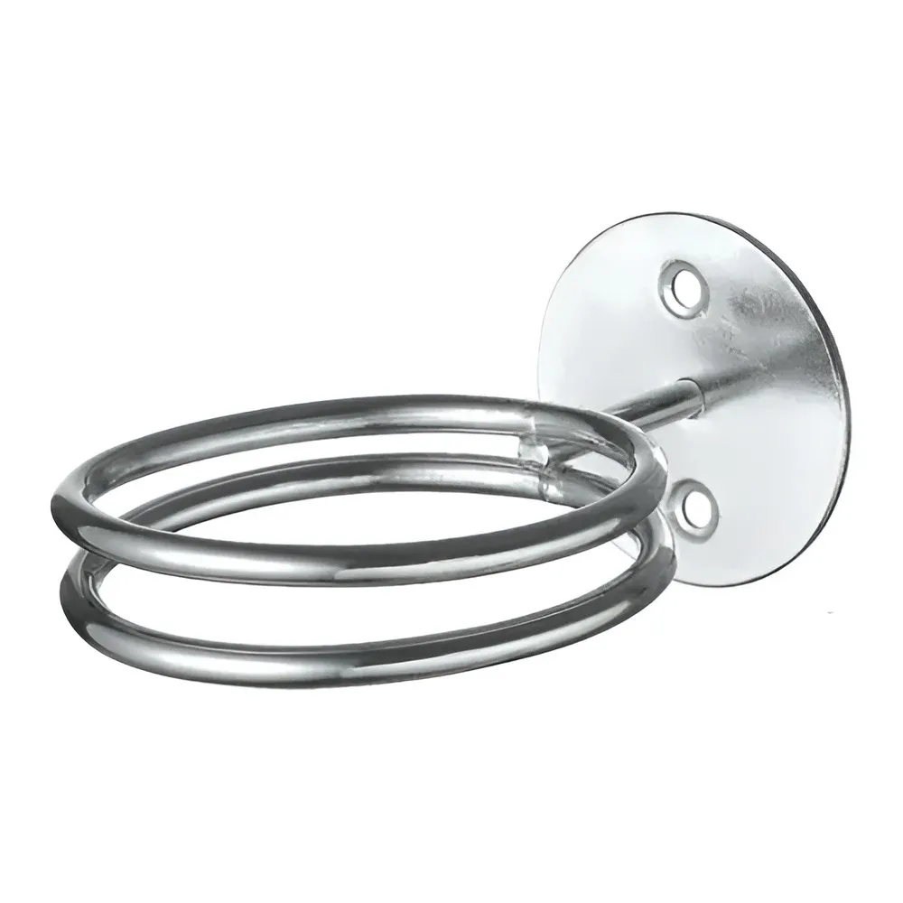 Професійний настінний тримач для фена, виготовлений із хромованого металу - ідеальне рішення для салонів і домашніх просторів: Цей тримач допомагає зберігати робоче місце впорядкованим, підвищує безпеку та швидкий доступ до інструментів.Тримач для фена кільцевій, подвійний Doublering 3160035/764076 Comair Germany