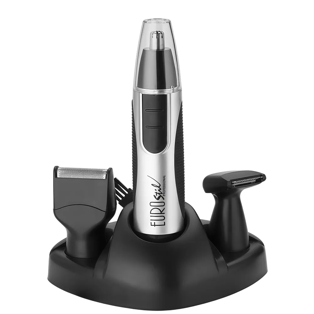 Доглянутість і охайність завжди личить будь-якому чоловікові. Тример Eurostil замінить відразу кілька приладів за повноцінним доглядом за обличчям. Інструмент на підставці укомплектований насадкою для стрижки носа та вух, для брів, бакенбард, шиї та потилиці, а також бритвою. Для легкого догляду за аксесуарами передбачена щіточка для чищення. Живлення тримера здійснюється від батарейок. Такий набір може стати чудовим подарунком для чоловіка на будь-який випадок. Особливості продукту: Триммер для носа на підставці + 3 насадки 04268 EurostilТриммер для носа на підставці + 3 насадки 04268 Eurostil