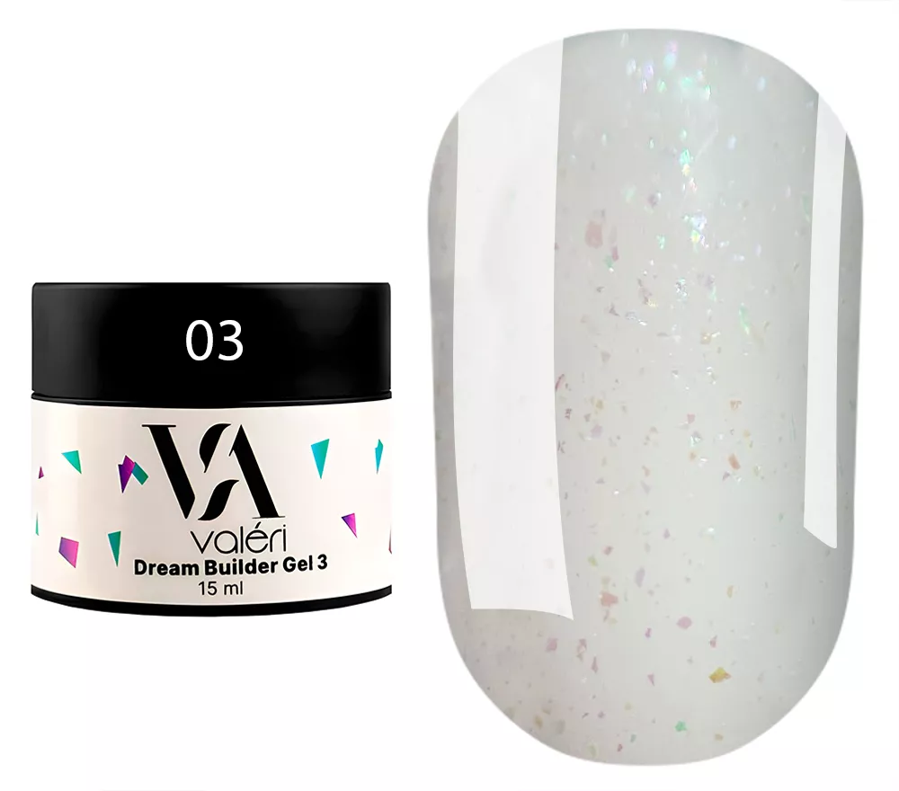 Valeri Dream Gel 03 - Молочний з ліловими та зеленими хлоп’ями