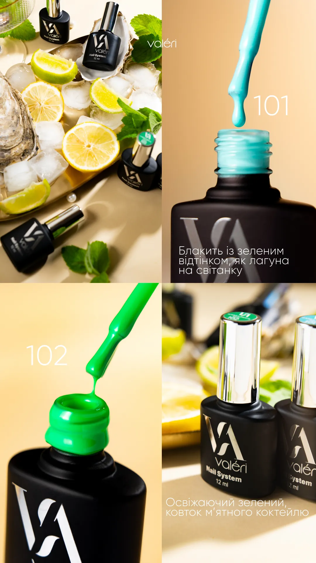 Valeri  Summer Breeze Base  Collection - використовуються як основний колір покриття та забезпечують зручність та швидкість роботи майстра. Бази для манікюру доступні у різних відтінках, що дозволяє підібрати колір, що найбільше пасує вашим клієнтам.