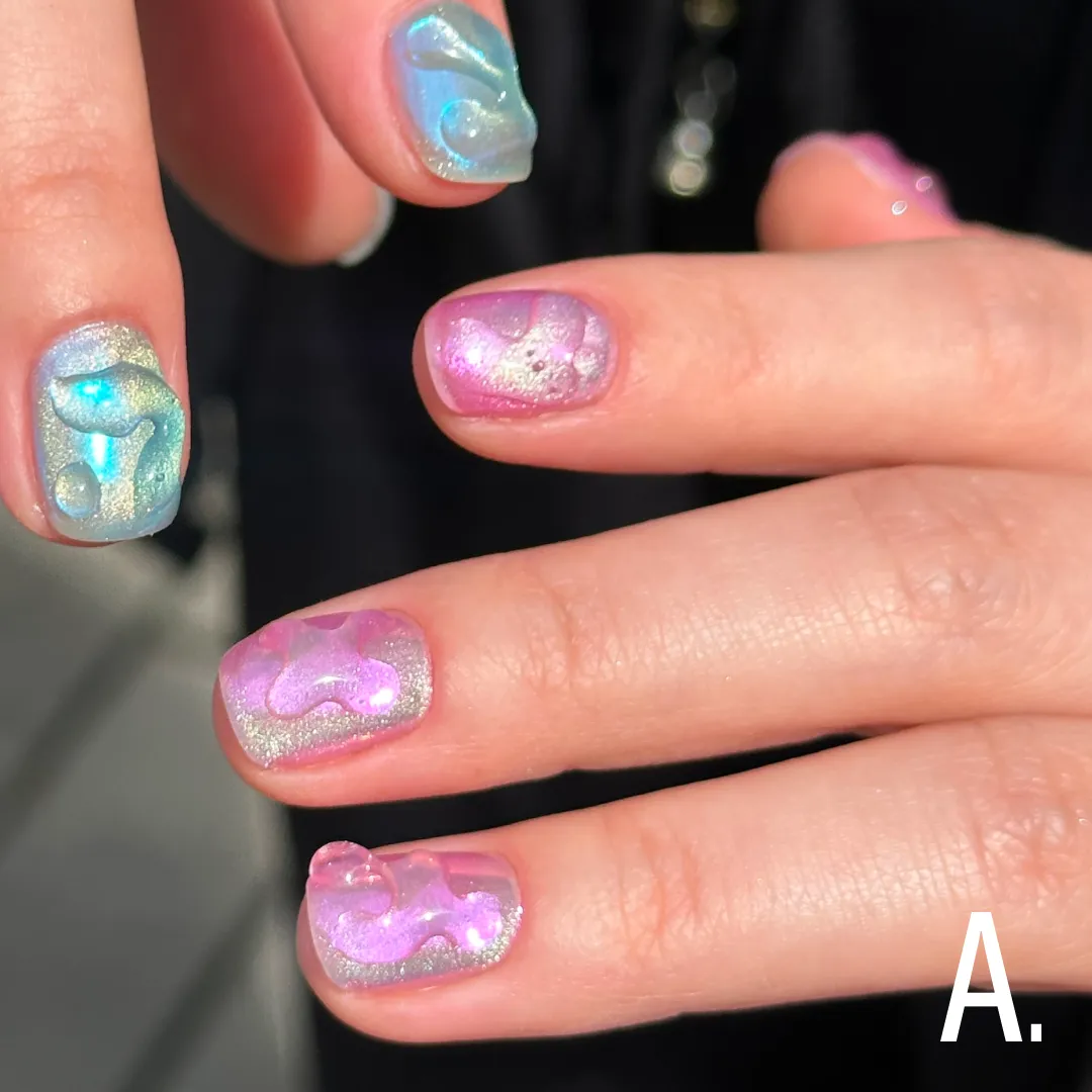 світлій основі — делікатні перламутрові, на темній — насичені райдужні переливи.