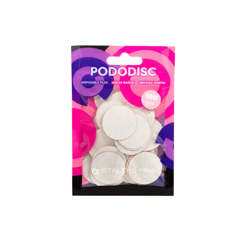 Набір Pododisc L – це 50 змінних файлів на клейовій основі, які легко та надійно кріпляться на диск педикюрного апарату.