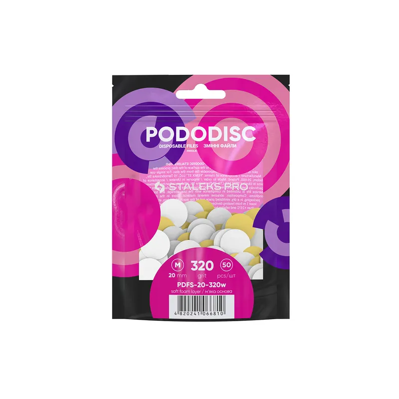 Одноразові абразиви для педикюрного диска роблять сервіс гігієнічним і безпечним для клієнта, не змушуючи з метою економії купувати дешеві багаторазові диски, які значно поступаються якістю обробки. Pododisc 320 грит — змінні наклейки з абразивом 320 грит, які дозволяють педикюрному диску обробити середню площу очищеної шкіри. Шліфуюча гритність призначена для надання шкірі ідеальної гладкості після зняття рогових нашарувань. Накладки надійно кріпляться і легко знімаються, не розмокають у воді та забезпечують якісне, рівномірне шліфування. Особливості продукту: Змінні файли БІЛІ для педикюрного диска на м`якій основі EXPERT PODODISC STALEKS PROЗмінні файли БІЛІ для педикюрного диска на м`якій основі EXPERT PODODISC STALEKS PRO