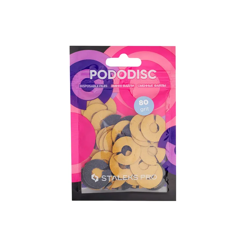Змінні файли гарантують чистоту, атравматичність і гігієнічність процедур манікюру та педикюру як для майстра, так і для клієнта. Одноразові абразиви для диска-основи Pododisc призначені для чищення та шліфування стопи. Щільна клейова основа надійно закріплює абразив на диску і не ковзає. Особливості продукту: Змінні файли-кільце для педикюрного диска PODODISC STALEKS PROЗмінні файли-кільце для педикюрного диска PODODISC STALEKS PRO