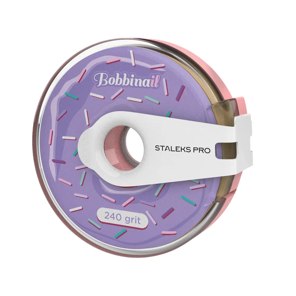 Високоякісні змінні абразиви на клейовій основі у зручному яскравому пластиковому футлярі у вигляді пончика. Неймовірний життєрадісний дизайн цього аксесуара нікого не залишить байдужим. Файли використовують для металевої пилки шириною 20 мм або для одноразових дерев`яних пилок від STALEKS. Дозволяють майстру самостійно відміряти необхідну довжину, мають дуже липку основу, відмінно тримаються на інструменті, абразив не розмокає у воді. Особливості продукту: Змінний файл-стрічка на клейовій основі в пластиковій котушці Bobbinail EXPERT 240 грит (7 метрів) AT-240 STALEKS PROЗмінний файл-стрічка на клейовій основі в пластиковій котушці Bobbinail EXPERT 240 грит (7 метрів) AT-240 STALEKS PRO
