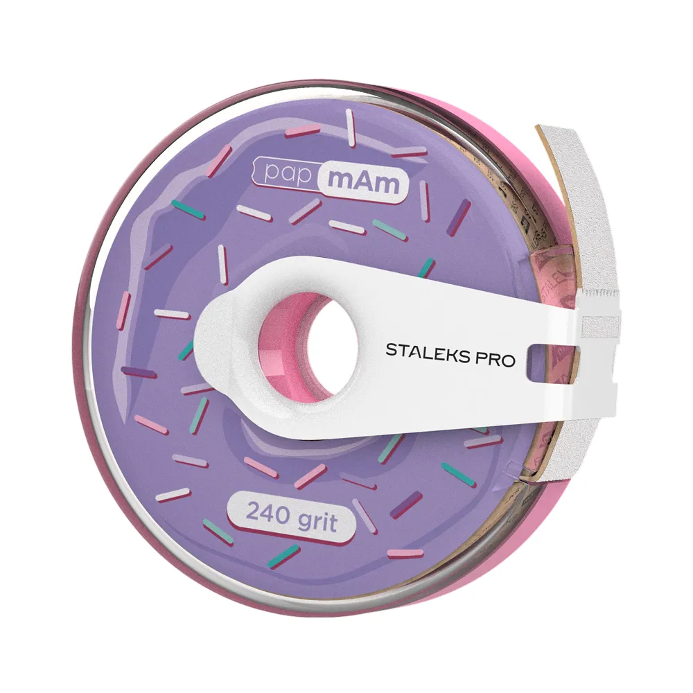 Змінний файл-стрічка чохол papMam (папМам) STALEKS PRO EXPERT - новинка на ринку одноразових абразивів. Котушка з білим одноразовим абразивом papmAm – стильний аксесуар майстра манікюру. Котушка зроблена з пластику, який захищає білу абразивну стрічку від забруднень та пошкоджень. Для зручного та чіткого поділу абразивної стрічки на котушці є спеціальна кліпса. Безклейові змінні файли pap mAm (тат мам) надягають на металеву основу як чохол, повністю закриваючи її з обох боків та торців. В одній котушці до 100 змінних файлів. Файл-чохол щільно сідає на металеву основу , і не ковзає під час активної роботи майстра. Особливості продукту: Змінний файл-стрічка papmAm БІЛИЙ EXPERT 240 грит в пластиковій котушці з кліпсою (7 метрів) ATC-240w STALEKS PRO Підходять для прямих основ MBE-20s, WBE-20, SPBE-20 і MBE-20.Змінний файл-стрічка papmAm БІЛИЙ EXPERT 240 грит в пластиковій котушці з кліпсою (7 метрів) ATC-240w STALEKS PRO