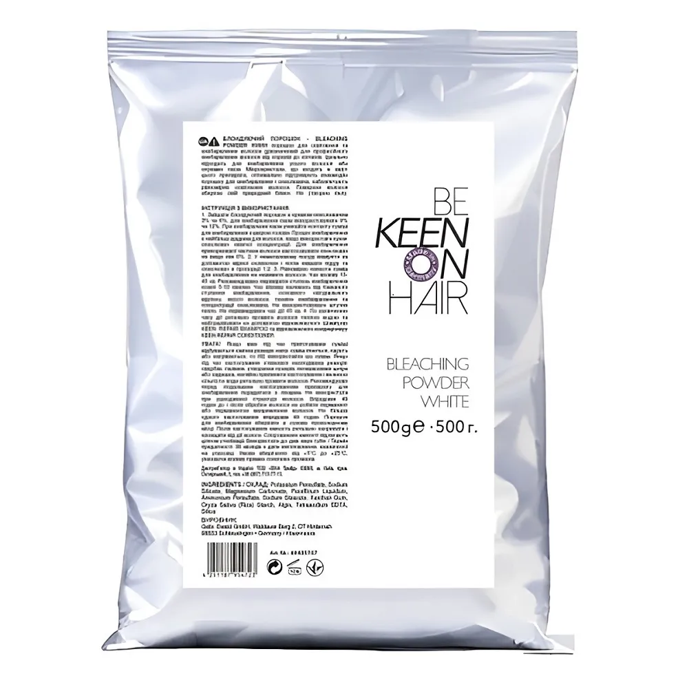 Порошок для блондування Bleaching Powder White KEEN має оптимальну мікроструктуру, яка не утворює пилу, легко та рівномірно розподіляється по волоссю. Завдяки рисовому крохмалю у складі виконує функцію заспокійливого, зволожуючого, мінералізуючого засобу. Містить мікрокристали, які при взаємодії блондувального порошку та оксиду вступають у реакцію з пігментом волосся, видаляють його та забезпечують рівномірний результат. Особливості продукту: Активні компоненти: рисовий протеїн має плівкоутворюючі властивості, натуральна плівка захищає від втрати вологи. Формула засобу протидіє сухості, що зазвичай проявляється після кожного процесу знебарвлення. Використовувати знебарвлювальний порошок рекомендується тільки з окислювальною емульсією KEEN. Застосування: Приготувати суміш із порошку Bleaching Powder і крему-окислювача в пропорції 1:2. Змішати блондувальний порошок із кремом-окислювачем 3%, 6%; для пасм можна застосовувати 9% або 12%. Поступово нанести кремову суміш на невимите волосся. Час дії: 15 - 45 хв.Знебарвлювальний порошок білий (7 levels) Bleaching Powder White KEEN